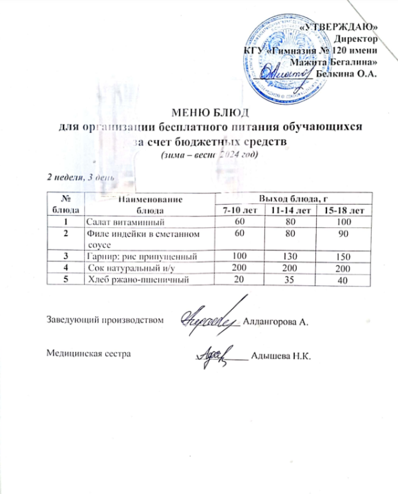 Меню 3 неделя 5 день